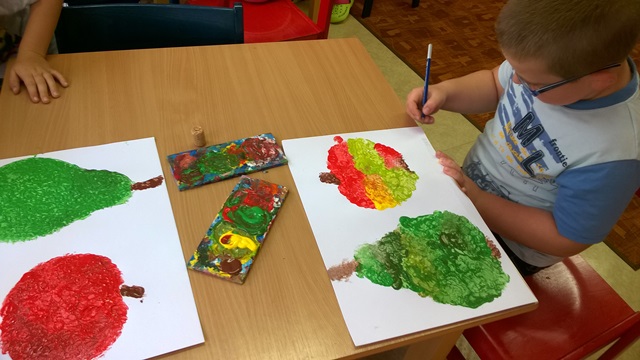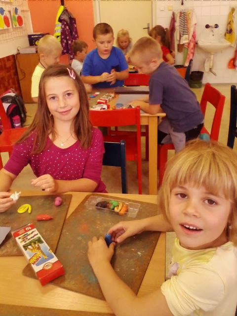 Hezké počasí jsme využívali k různým pohybovým hrám a vycházkám do přírody, kde jsme nacházeli inspiraci k výtvarným činnostem.