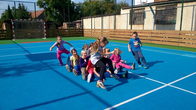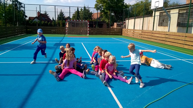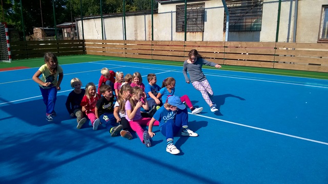Na hřišti s umělým povrchem a v tělocvičně jsme se věnovali sportovním hrám a soutěžím.