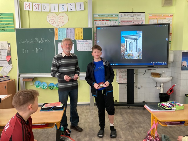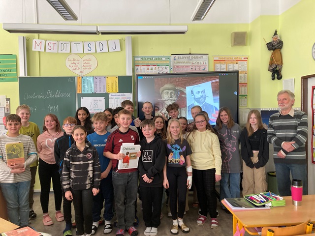 Děti si pozorně vyslechly zajímavé vyprávění o životě a tvorbě tohoto malíře a zapojily se do krátkého vědomostního kvízu. Děkujeme panu Sejčkovi za čas strávený s námi.