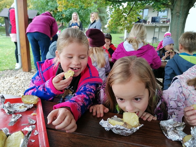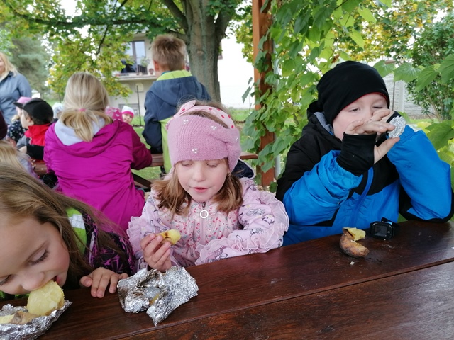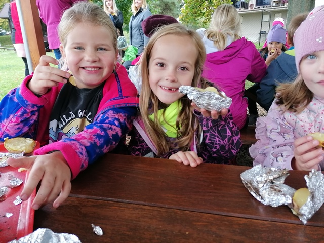 Zde jsme si společně pohráli, zapojili jsme se do připravených soutěží a pochutnali jsme si na pečených bramborech.