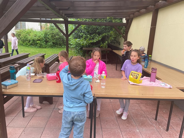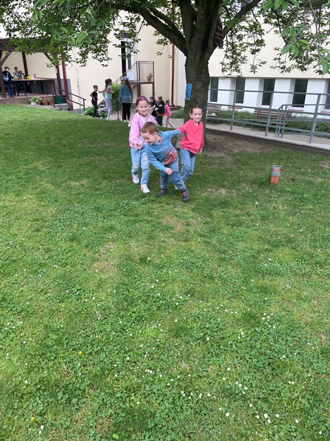 Žáci naší školy mají možnost trávit velké přestávky na školní zahradě. Mohou se zde nasvačit, nebo protáhnout tělo při různých pohybových aktivitách.
