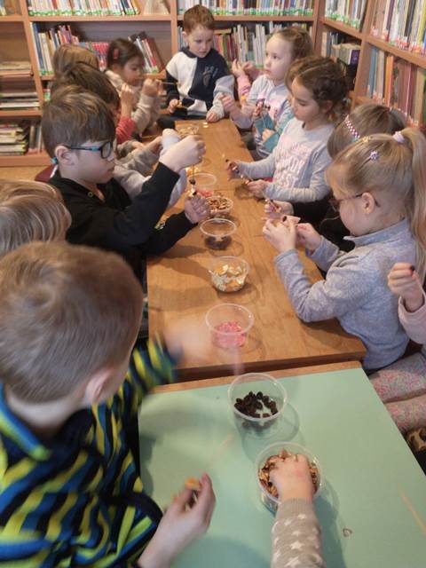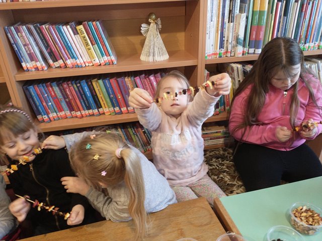 Přichystala pro všechny sušené ovoce, mašle a špejle. Děti si vytvořily vánoční dekorace, kterými si vyzdobily třídu.