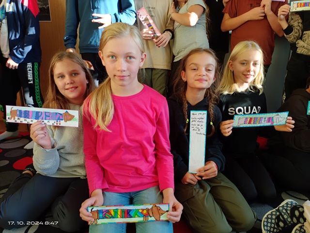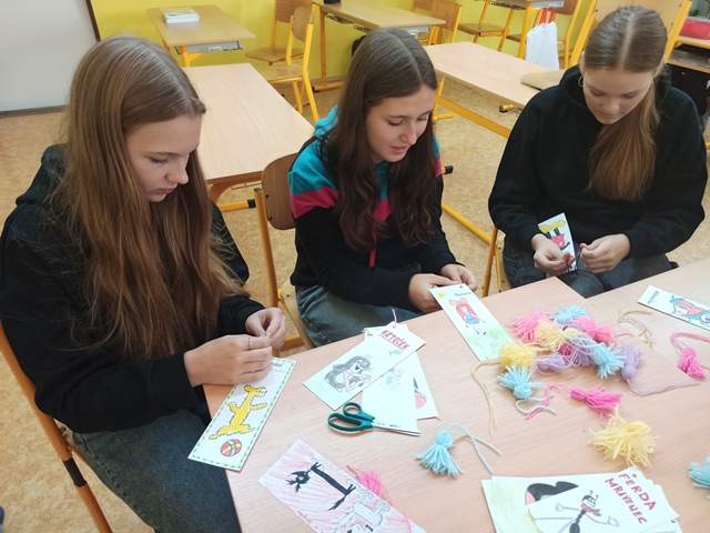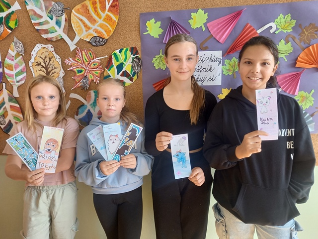 Žáci vytvářeli záložky, na kterých byly vyobrazené různé zvířecí motivy. Nechali se přitom inspirovat vlastní četbou knih se zvířecími hrdiny nebo pohádkovými Večerníčky.