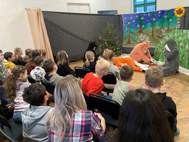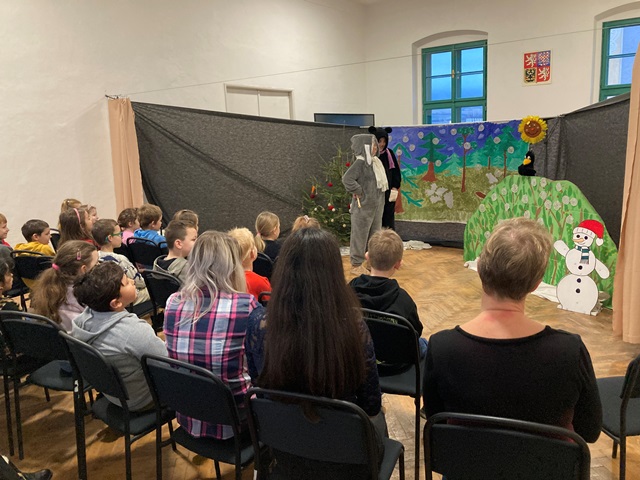 Děti nadšeně sledovaly vtipnou loutku havrana i jeho zvířecí kamarády a představení se jim velice líbilo. Děkujeme a těšíme se na další herecké výkony.