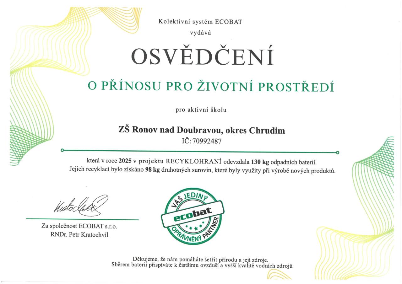Jejich recyklací bylo získáno 98 kg druhotných surovin, které byly využity při výrobě nových produktů. Propojení osvěty s konkrétním činem je zcela jedinečné a učí žáky zodpovědnosti, kterou si odnášejí do budoucího života.