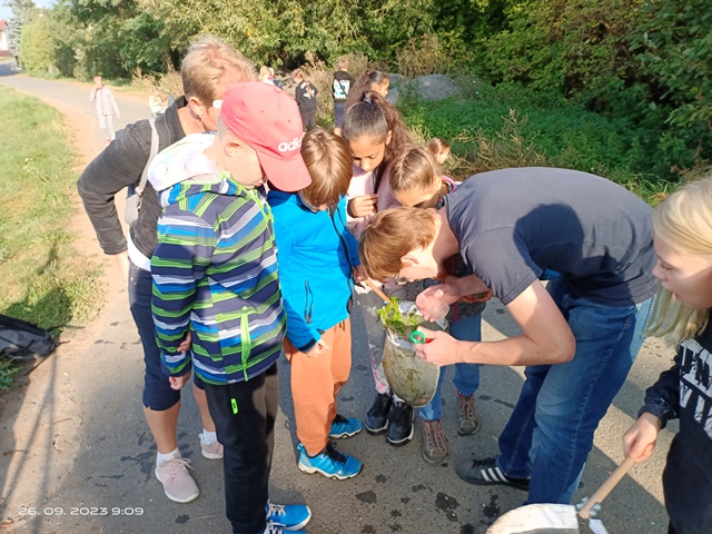Děti nadšeně zkoumaly vše, co se jim podařilo ulovit pomocí zapůjčených badatelských pomůcek, a pozorně vyslechly velmi zajímavé vyprávění pana Vlasáka, zaměstnance Městského muzea Čáslav, který je programem zasvěceně provázel.