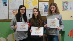 Protože došlo k úplné shodě, byla udělena dvě první místa a tak vítězství získávají Rudolf Brynych a Vojtěch Hrdlička, oba žáci druhého ročníku. 2. místo obsadila Štěpánka Koutná (2.tř) a třetí místo patří Natálii Koubové ze 3.třídy. Bylo uděleno i čestné čtvrté místo a to patří Terezce Nesládkové, rovněž ze 3. třídy.