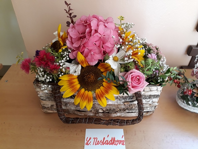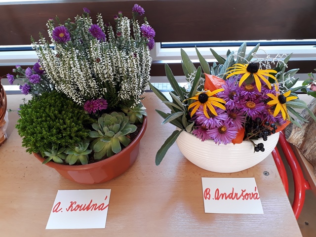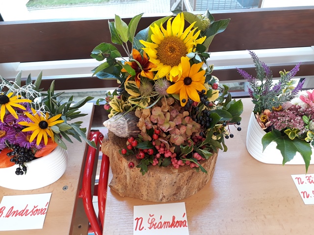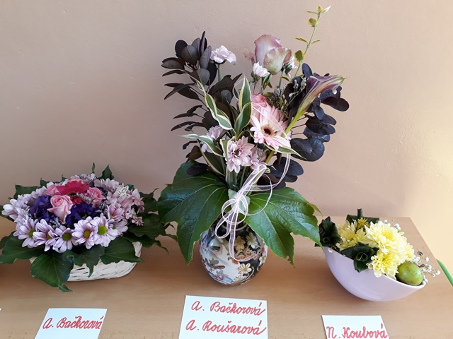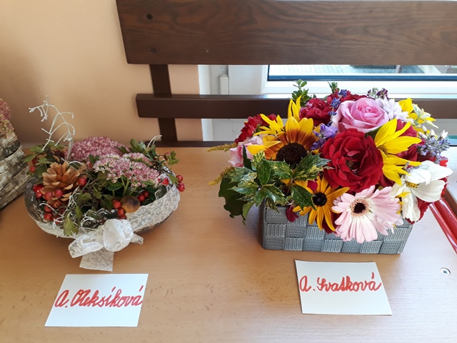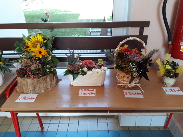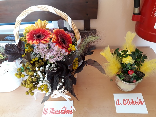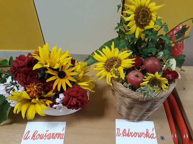 Květiny nás neustále okouzlují svou nádherou a pestrobarevností. Jsou ozdobou přírody a všeho kolem nás. Jejich krása přímo vybízí k tomu, abychom si je občas utrhli a vytvořili z nich něco pěkného, co zkrášlí náš domov a jiná místa. Někdy se to opravdu podaří a dvaceti žákům šesté až osmé třídy se to myslím povedlo náramně. Zhotovili velmi pěkná podzimní aranžmá z různorodé škály květů. Zaslouží si velkou pochvalu, nejen za tvůrčí přístup a nádherné výtvory, ale i za to, že si obstarali spoustu potřebného materiálu.