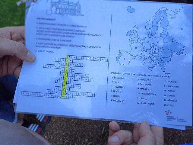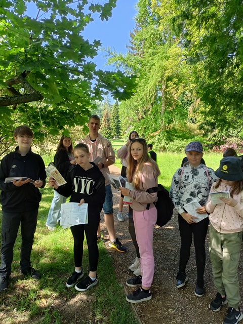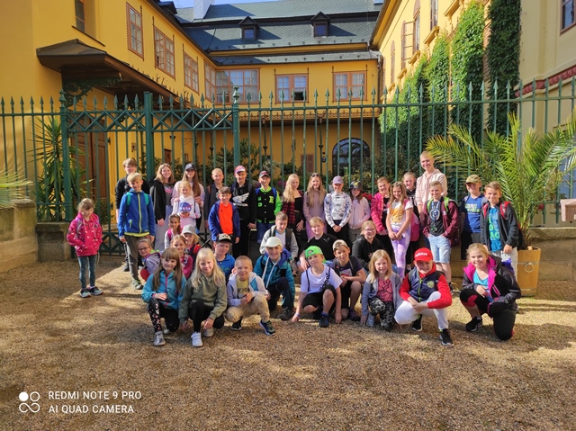 Žáci 1. až 4. třídy se podívali do interiéru zámku na speciální prohlídku „ Jak se žilo na zámku “ a žáci 5. až 9. třídy šli na procházku do zámecké zahrady, kde byla přichystána zeměpisná hra „ Pozdravy z cest “. Podle úsměvů na tváři, jsme poznali, že se dětem výlet velice líbil.