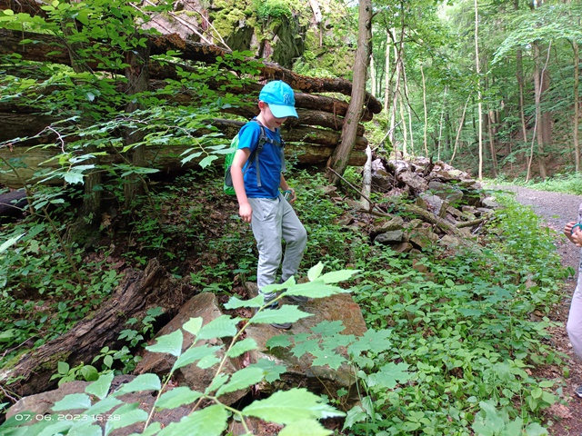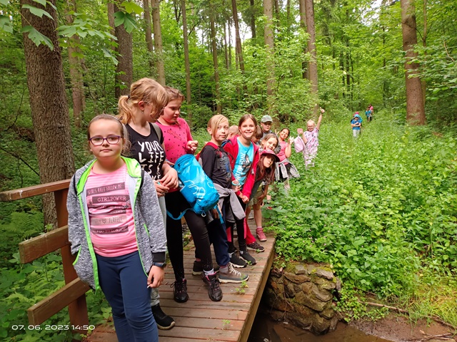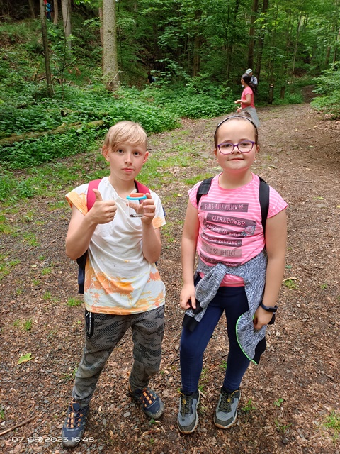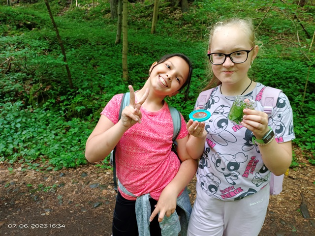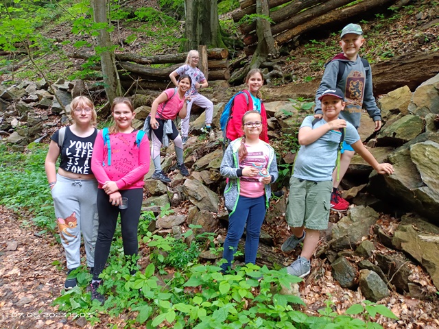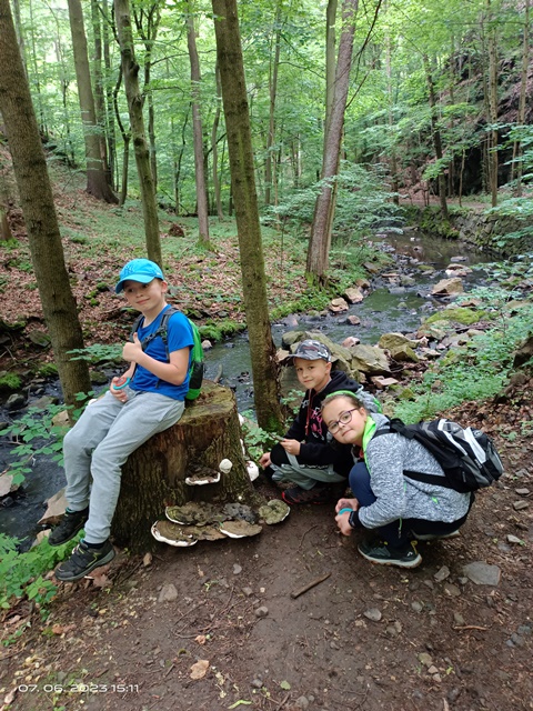 Poslední červnová výprava byla nejen turistická, ale i badatelská. Cestou Hedvičiným údolím děti pomocí kelímků s lupou pozorovaly různé živočichy, rostliny i nerosty, které se nacházejí v této přírodní lokalitě.